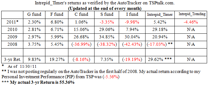 Current Signal for Intrepid_Timer: A SELL equities signal was issued on 11/30/2011.